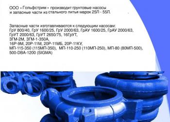 ООО «Гольфстрим» производит: Запасные части из стального литья для грунтовых насосов (рефулёрных помп) 115МП-350-29,8 и 500...
