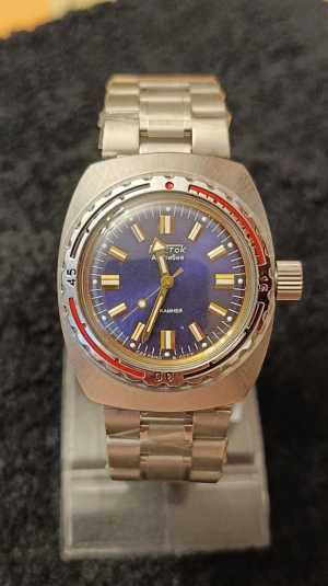 Восток бочка синяя. СССР. Механизм 2416 с автоподзаводом. Полностью восстановлены.