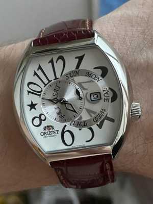 Часы Orient механика, расширенный календарь. День недели вынесен на отдельную стрелку. Ретроград. Часы новые. Коробка.