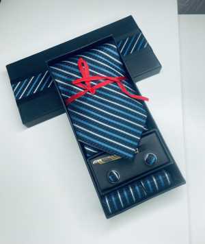 В подарочный набор входят все необходимые аксессуары, чтобы создать элегантный и завершённый образ: галстук, запонки, платок...
