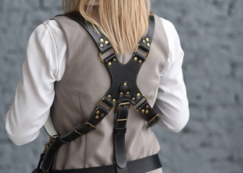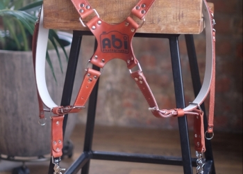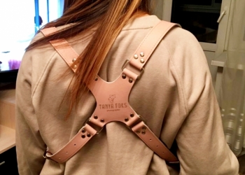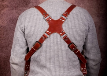 разгрузка для фотографа из натуральной кожи. ремни плотно сидят на теле , длина регулируется пряжками.