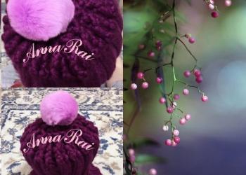 Шапка из Объёмной Итальянской Шерсти с Помпоном из Натурального Кролика, вязка спицами и крючком! Размер 54-56!