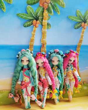 Авторские куколки. Текстильные брелоки девочки с фламинго.