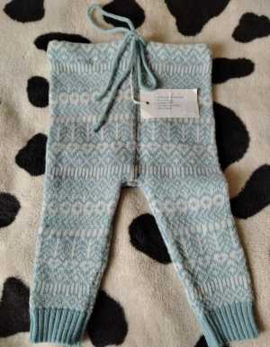 Шерстяные штанишки для вашего малыша голубого цвета, на бирке указан размер 74-80 см. На талии затягиваются веревочкой.
