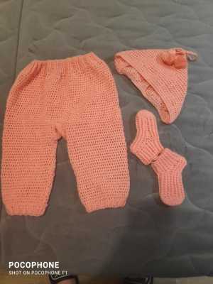 Набор для девочки вязаный,шапочка ,штанишки и носочки.