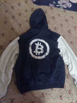 Толстовка с логотипом"Биткойн" (с капюшоном), цвет: темно-синий с белыми рукавами, размер:54. Новая, не одевалась.