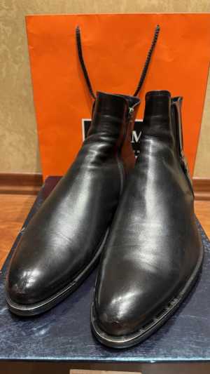 продаю сапоги практически новые натуральная кожа производство Италия внутри мех голенище фетр тёплые и удобные на ноге.