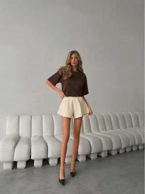 Стильные костюмные шорты молочного цвета с высокой посадкой — универсальная модель для летнего гардероба.