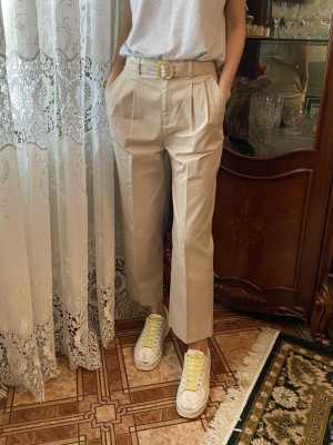 Одеты были пару раз, в отличном состоянии. Дополнительно вставлена резиночка в пояс, брюки с разрезами по бокам.