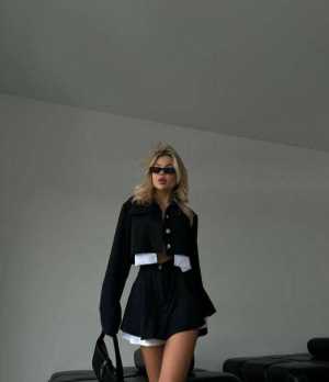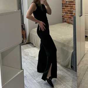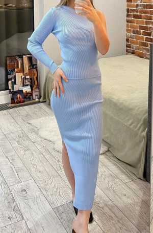 В наличии размер М. В двух цветах: черный и синий. Костюм двойка: юбка и рубашка.