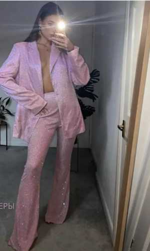 Продаю абсолютно новый розовый женский костюм с блестками со всеми бирками и коробкой. Мне не подходит по размеру.