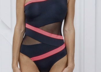 Купальник слитный на одно плечо с вставками из сетки комбинированный.