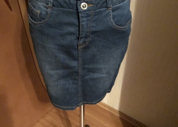 Юбка джинсовая, размер 44-46, длина на рост 170 см чуть выше колена.