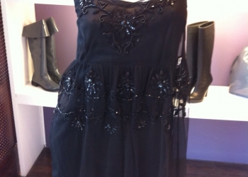 Очень эффектное платье Galliano, оригинал, Италия, на черном чехле черная сетка расшитая бисером, р 40, новое (остатки после...