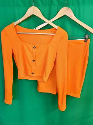Яркий, сочный оранжевый 🧡 Костюм юбка топ, НЕ НОСИЛИ Отлично на размер 44-46