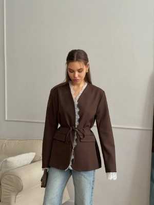 Новый женский стильный и лаконичный пиджак, с гипюровыми дополнениями. Размеры: S 42,44;M 46,48