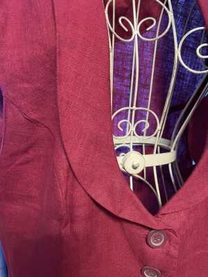 Жилет женский Из льна яркого бордового цвета, воротник шалька, спереди два кармана, хорошо комбинируется , доставка...