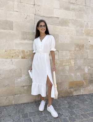 Платье миди с разрезом - актуальный фасон, который сочетается с любой обувью и адаптируется под образ.
