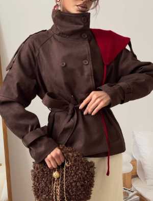 Новая женская дубленка. Облегчённая, мягкая, на пуговицах, с капюшоном, по бокам с разрезами с пуговкой.