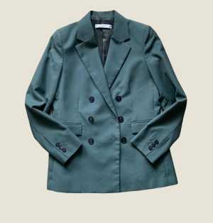 Пиджак двубортный на пуговицах, цвета морской волны. В хорошем состоянии, надевался неоднократно.
