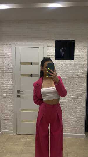 Брючный костюм состав хлопок заявленный размер эль, подойдёт на российский 46/48 отталкиваемся от замеров.