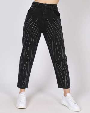 ✨ Элегантные укороченные джинсы Mom Fit с роскошными стразами – тренд сезона! Эти черные джинсы – идеальное сочетание стиля...
