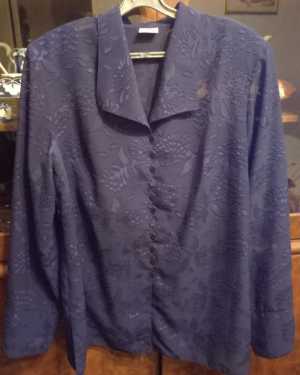 Новая Атласная блузка ( полиэстер) Темно фиолетового цвета с цветами Размер 50 Длина перед 75 см Длина сзади 77см...