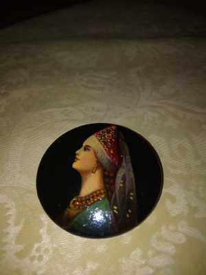 Продается брошь "Русская Красавица" , диаметр 4,5 см.( Женский профиль на черном фоне )