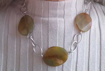 Колье с натуральными бразильскими агатами на стильной цепи с крупными звеньями. Длина 50 см. Камни 4х3 см.