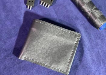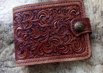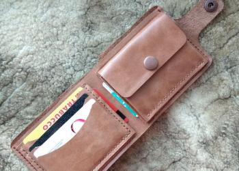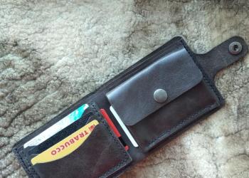 Кошелек изготовлен вручную из качественной натуральной кожи. Кожа мягкая , прочная толщиной 1.5 мм.