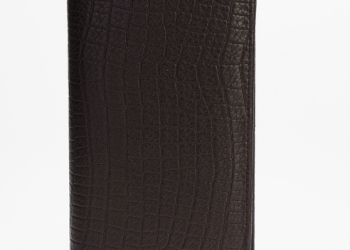Портмоне изготовлено из натуральной кожи сиамского крокодила насыщенно черного и коричневого цвета.