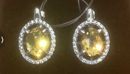 Серьги с яркими природными золотыми цитринами шахматной огранки общим весом 3.40ct (8.5х6.