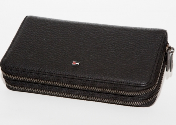 Кошелек мужской кожаный с 2 отделениями, еще одно на молнии. Кроме того для мелочи есть специальные кармашки.