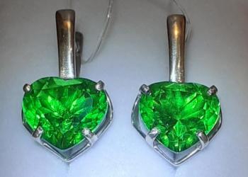 Серьги с редкими яркими природными коллекционными молдавитами без обработки, общим весом 4ct (8mm), VVS, (в одном сердечке...