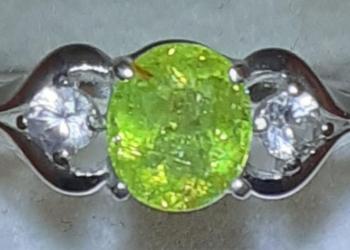 Кольцо с редким крупным природным пакистанским ярким перидотом груша без обработки 3,20ct (10.2х7.