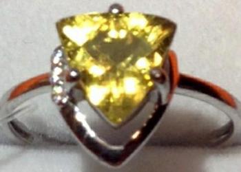 Кольцо с природным золотым бериллом гелиодором триллионом без обработки 1.62ct (8×7.9mm) VS, размер 17.