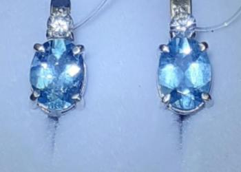 Серьги с редкими природными африканскими аквамаринами blue medium без обработки 1.