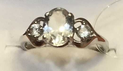 Кольцо трилогия с редким природным светлым аквамарином (8x6mm), IF-VVS, (Бразилия) и природными белыми сапфирами (2/2.