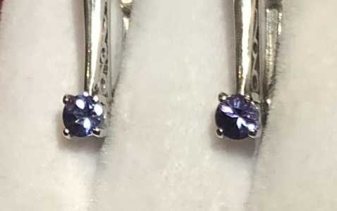 Классические серьги с редкими яркими природными васильковыми танзанитами без обработки, диаметром 4mm, Танзания, проверены у...