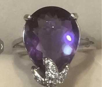 Кольцо перстень с крупным природным аметистом груша и трилистником без обработки 9.15ct (15.