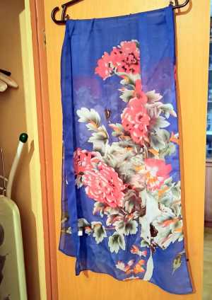 Шарф синий с красными цветами 160х50см, новый, 60% полиэстер, 40% шелк, Китай - 525р, Шарф белый с черными цветами...