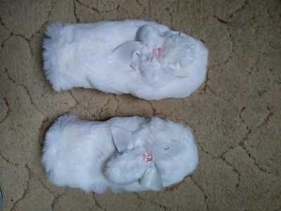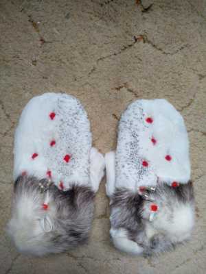 Совершенно новые варежки , из стриженного, белоснежного кролика и красивой отделкой из мехового цветка.