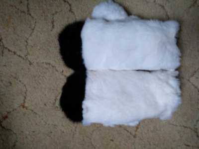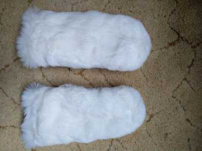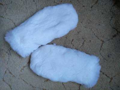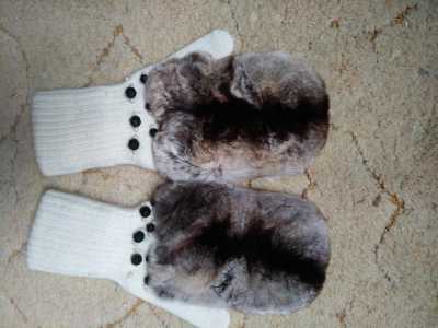 Совершенно новые варежки , из стриженного, белоснежного кролика. Ладошка из комбинированного меха, кожи и бежевой ткани.