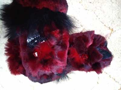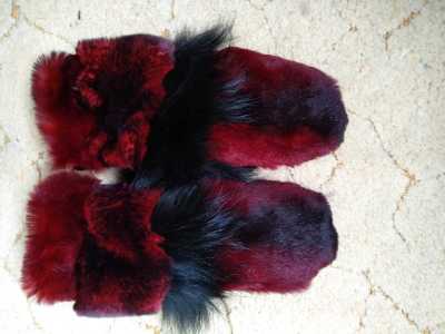 Новые рукавички из натурального меха бордового рекса со вставкой из черного песца. Размер по длине 24 см. Ширина 10,5 см.