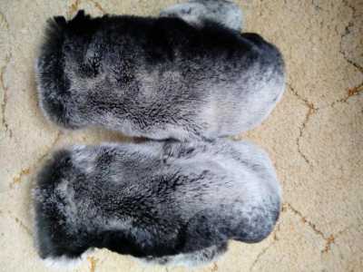 Новые варежки из натурального меха, . Цвет под шиншилового цвета рекса . Ладошки из натуральной , черной кожи.