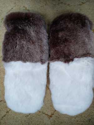 Совершенно новые варежки , из стриженного, белоснежного кролика и темно коричневой норки.
