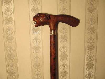 Трость" Саблезубый лев" авторская ручная резьба по дереву шафт береза, ручка дуб, латунь.