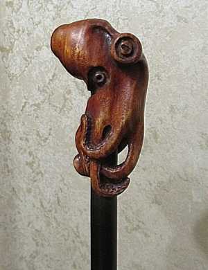 трость " осьминог" авторская ручная работа шафт берёза, навершие в виде осьминога выполнено в технике ручной резьбы по...