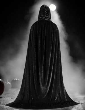 Новый Ткань полиэстер Велюровое покрытие Черная мантия с капюшоном Для праздника, маскарада Длина 140 см