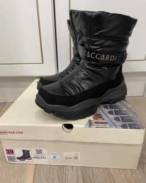 Зимние дутые сапоги, T.Taccardi , указан размер 39, но комфортнее на 38. Стелька 24,5см. Материалы искусственные.